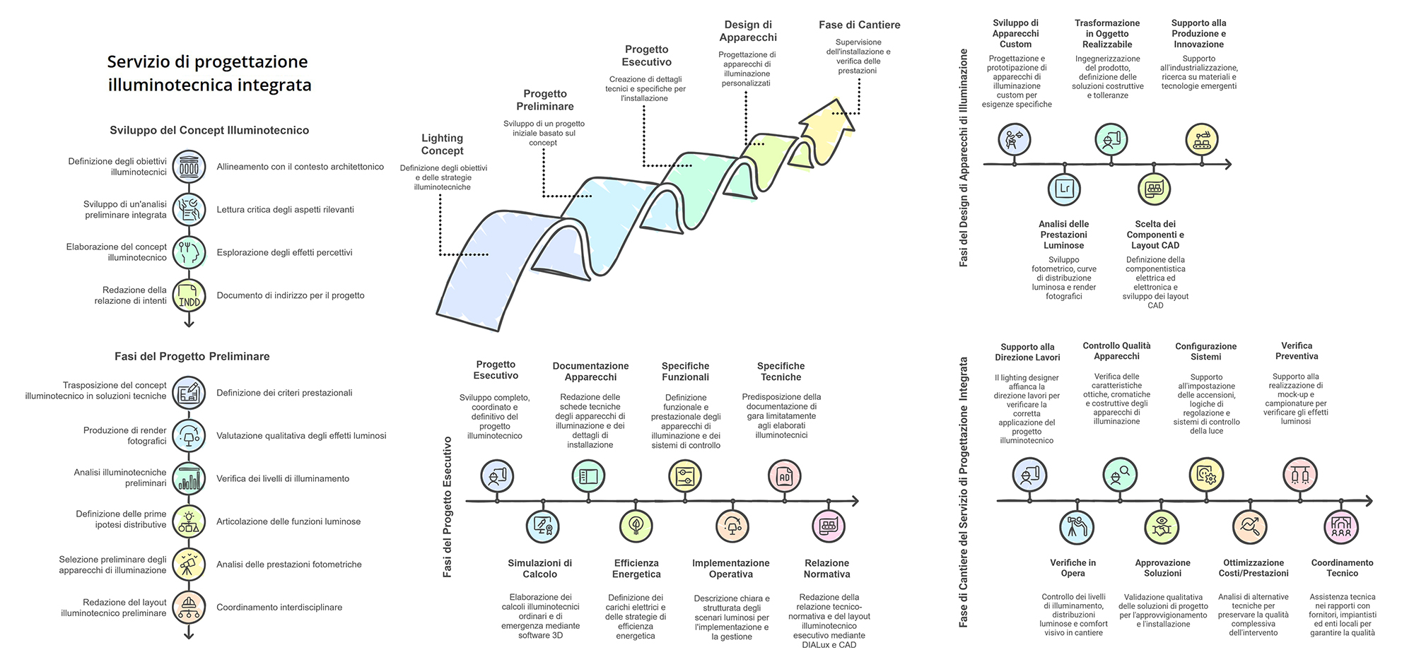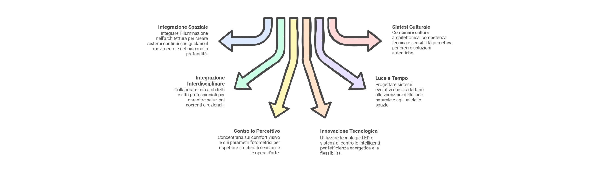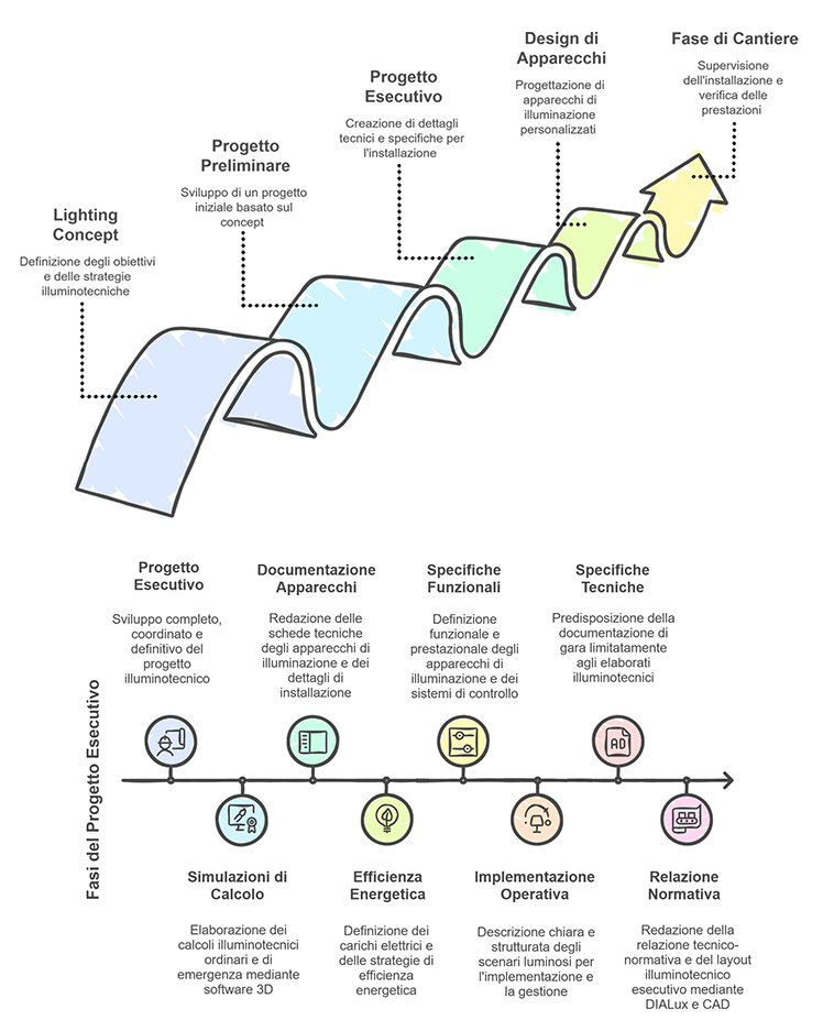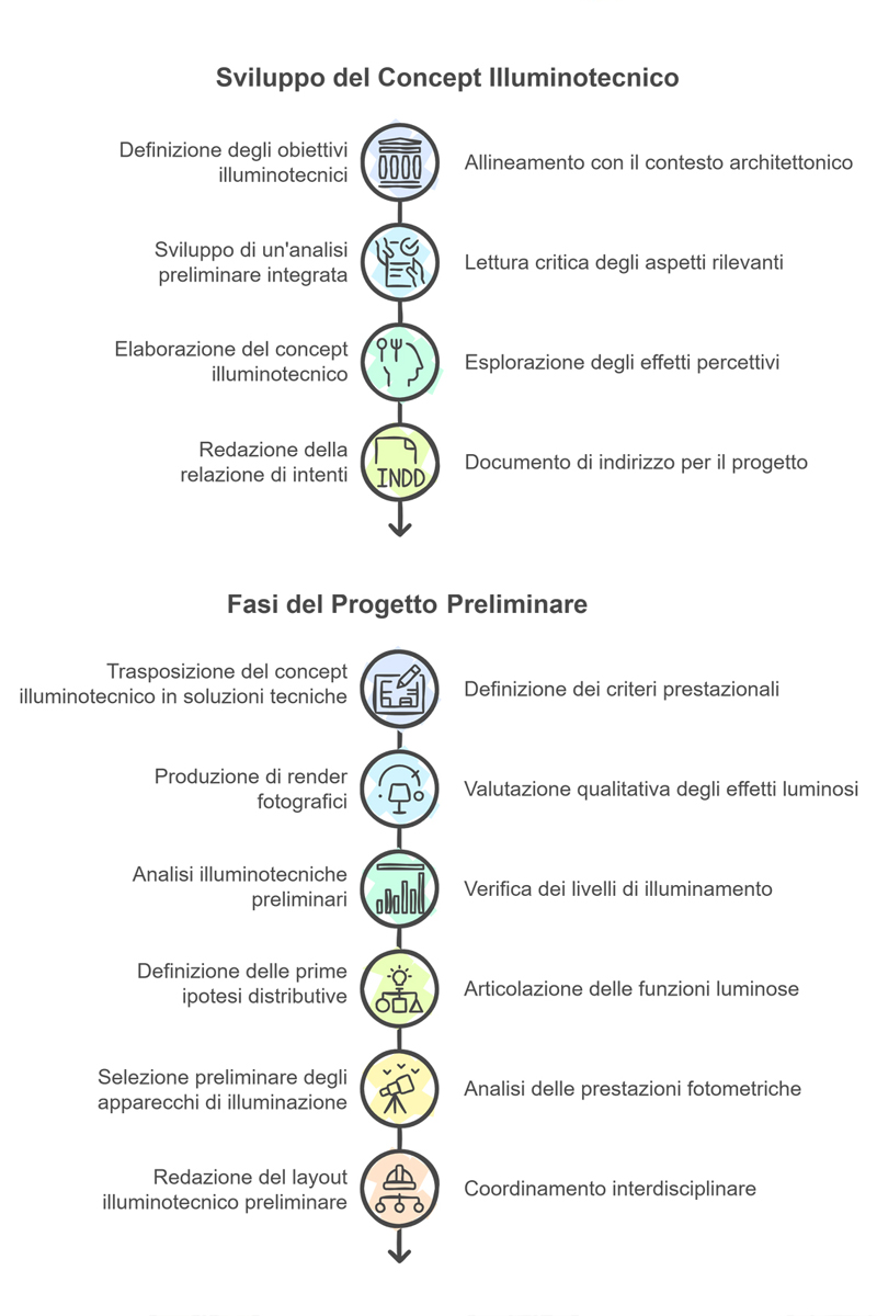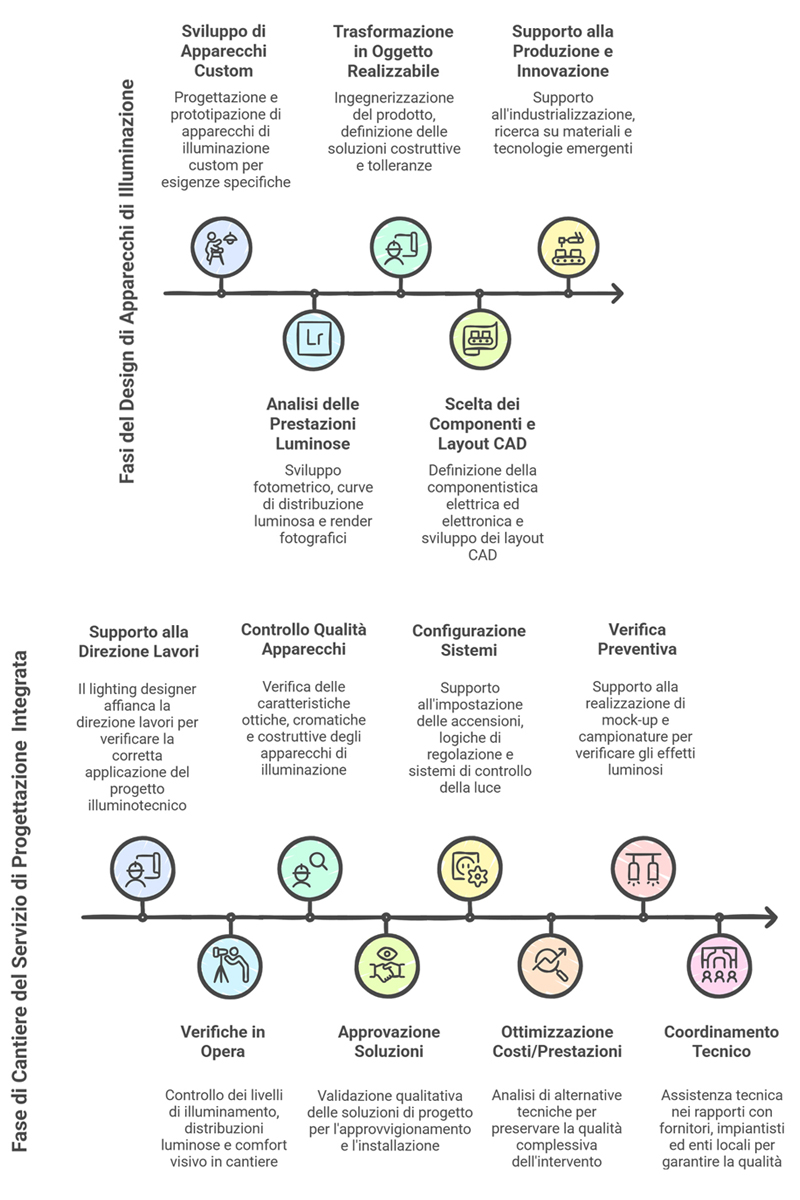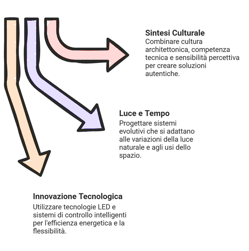 The chapters dedicated to individual architects will go into the merits of the projects and the specificities of each collaboration. In this section, the focus is on the common thread that runs through these experiences: the ability to transform every international comparison into an opportunity for methodological refinement and broadening of the design vision, giving shape to a profile in which disciplinary integration, operational precision and cultural sensitivity they manifest themselves concretely in the quality of the illuminated space.