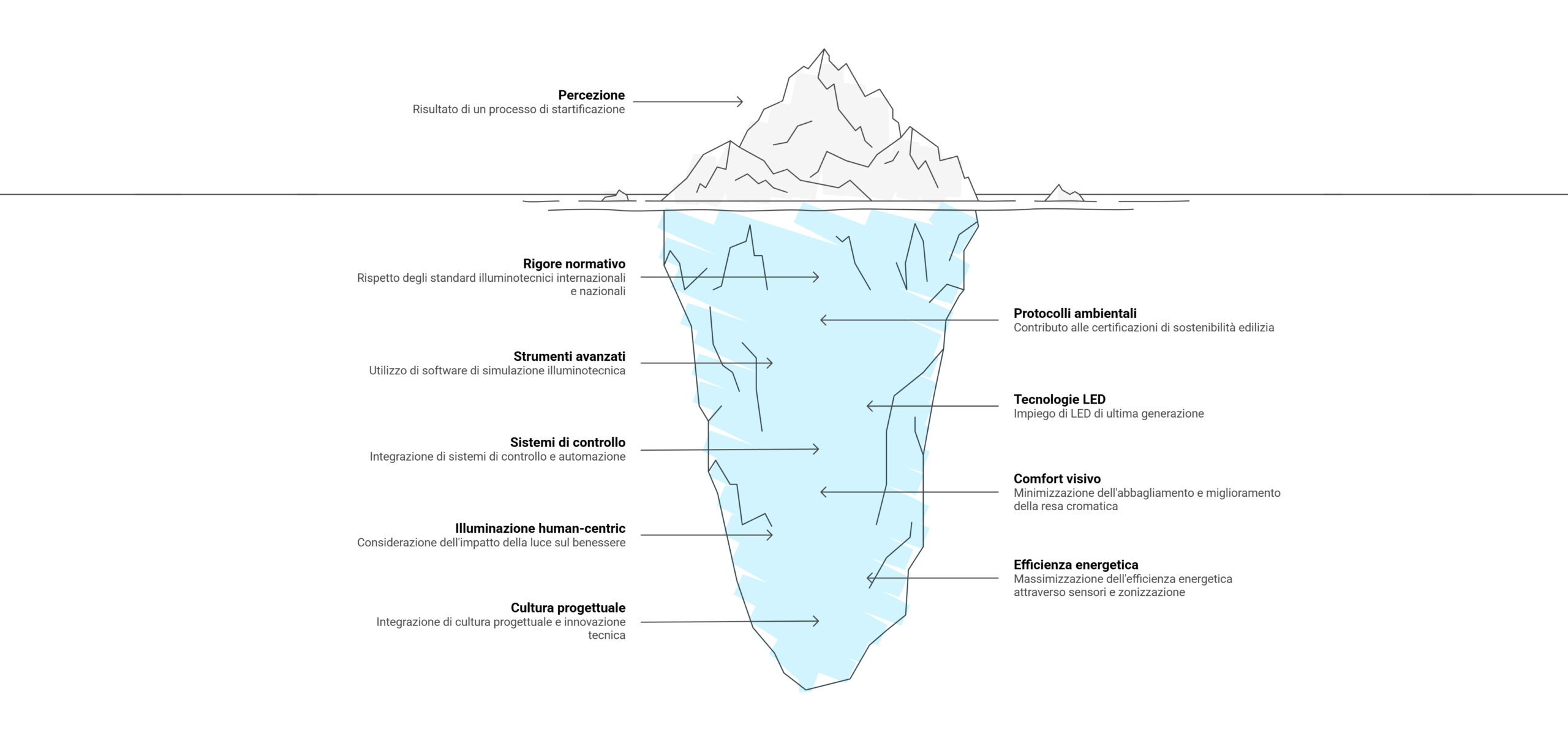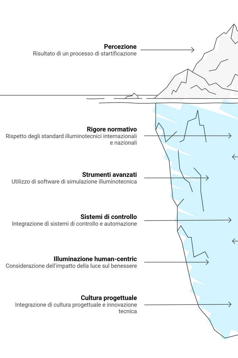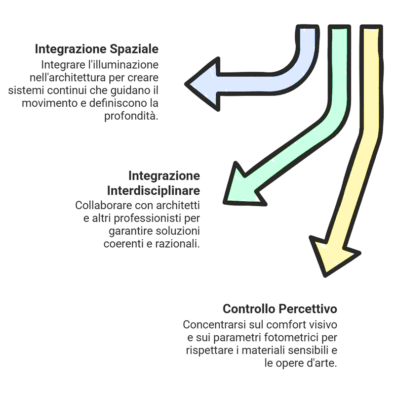 This ability stems from a precise assumption: effective lighting is not applied "after", but is built "with" architecture. In practice, it means reading hierarchies, rhythms, depths, textures and light thresholds as part of the project, declining the same principles of good lighting design according to very different scales and types: from airport infrastructure to museums, from high-end hospitality to historical heritage, from experimental contemporary architecture to archaeological contexts and sacred.