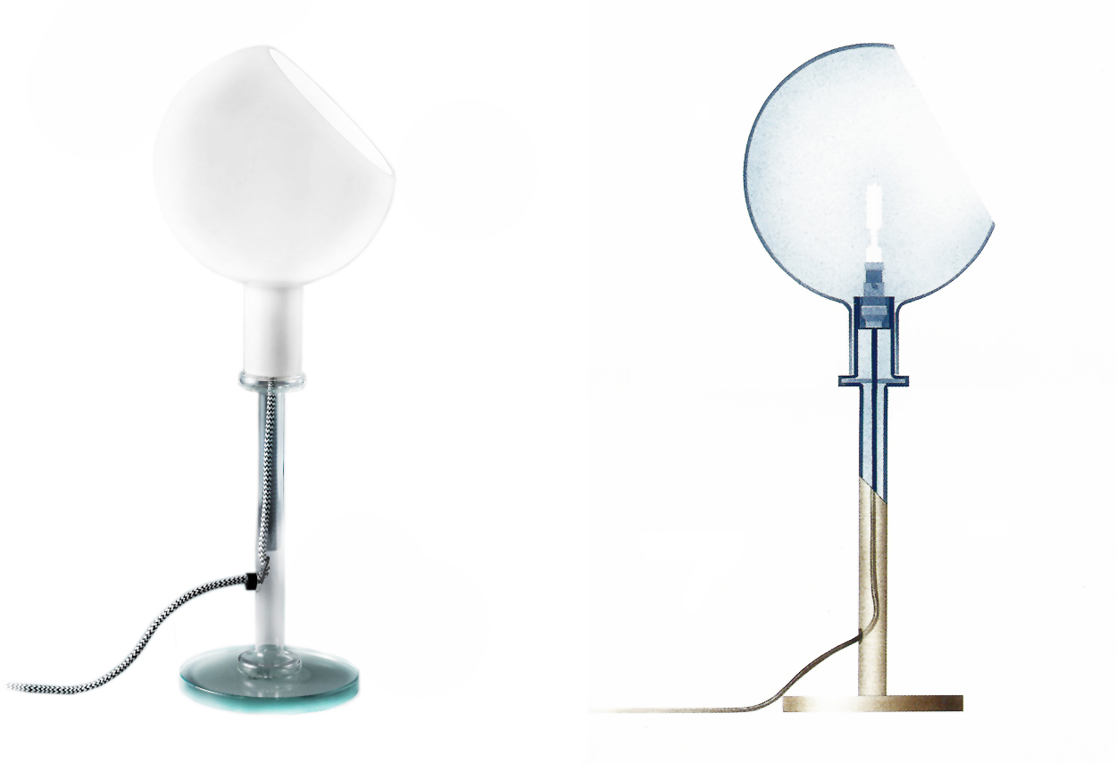 Parola Lamp, designed by Gae Aulenti and Piero Castiglioni for FontanaArte. The object represents an exemplary synthesis of the concepts of diffusion, reflection, and transparency, expressed through a simple formal language and the balanced use of glass in various processes.