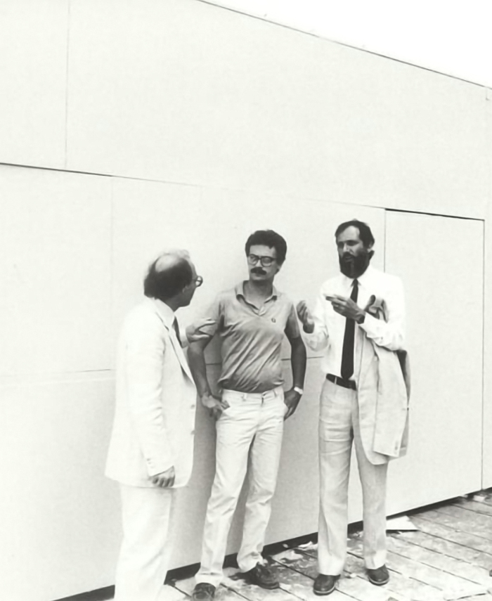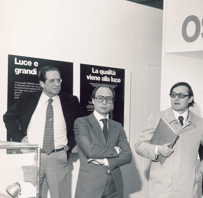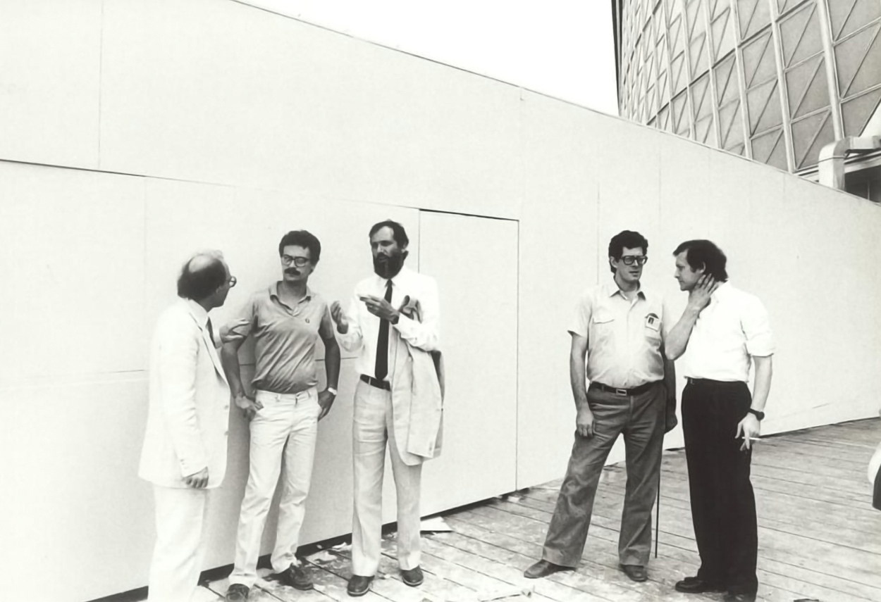 Turin, 1983 – A moment of confrontation between architecture and light. Architect Renzo Piano converses with lighting designer Piero Castiglioni.